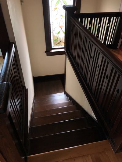 "Working with Chris was a pleasure, and we couldn’t be happier with the results. He refinished two large floor surfaces and two staircases in our 1912 house. The job was challenging: an old carpet had left a significant imprint on the stairs, while the fir floors offered limited space to maneuver and required a lot of detailed work to get to each corner (and work around the existing trim). Chris took pride in his work, and his attention to detail was excellent — he would simply not give up until everything was done to the highest possible standards. He offered many different solutions to hide the imprint left by the carpet on the stairs, and actually tried multiple stains to let us decide which we liked best. At every step, he went beyond what could be expected: for example, when he found a leak in the bathroom after removing some of the trim, he arranged for a general contractor to look at it before proceeding (and did not charge us for it). Upon entering the house, he noticed that our front door scraped on the floor a bit, and immediately removed the door and trimmed it slightly to solve the problem. The final bill was closely aligned with the original quote (and, in our opinion, very reasonable given the amount of work) even if the job was more challenging and took a bit longer than anticipated. The whole time, Chris worked hard and very long hours, and was at the house all day, every day, from start to finish. Finally, Chris is a kind and pleasant person, we actually missed him when he was done with the work! We recommend Chris with no hesitation whatsoever."